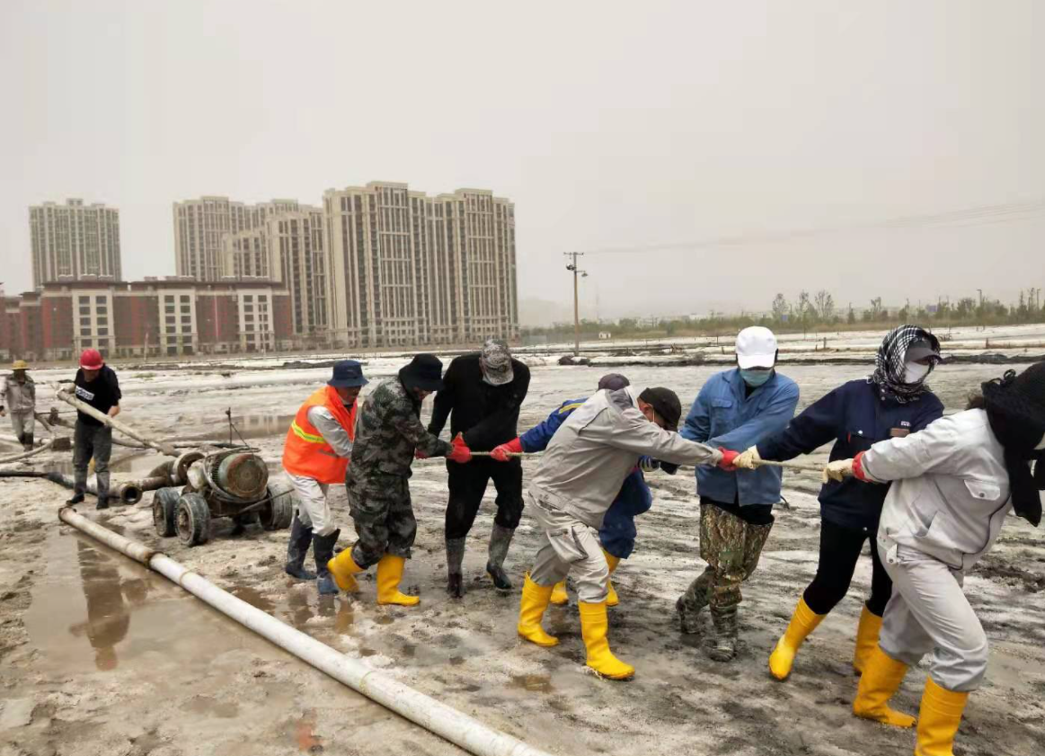 “百日會戰(zhàn)”完美收官,大家以黨史學習教育為精神動力,弘揚“四再”創(chuàng)業(yè)精神,淬煉“四拼”工作作風,展現(xiàn)出強有力的政治責任感和歷史使命感,在廣袤的鹽田上,用勤勞的汗水譜寫“四個最”的美麗華章。開局最早,搶抓春景好時光,開創(chuàng)歷史最早記錄,“破天荒”地從大年初十開啟扒鹽。戰(zhàn)線最長,以西灘機械扒鹽為起點,歷經(jīng)東灘、大八組、海濱人工扒鹽,二組、西灘雙線齊上、火力全開,至東灘機械扒鹽落下帷幕,實現(xiàn)了“漫漫長征路”的圓滿勝利。歷時最久,整整百日一舉打破扒鹽歷時最久記錄,從冷冽刺骨的寒風,到烈日當空的火熱,從臃腫的棉襖,到清涼的短袖。困難最多,面對天時不利的氣象條件,面對著堿廠關停的嚴峻局勢,面對著環(huán)保安全的巨大壓力,面對著人手不足的現(xiàn)實問題,團結一心,攻堅克難,迎接挑戰(zhàn),眾志成城筑鹽山,“暑霜春雪”顆粒盡歸倉。