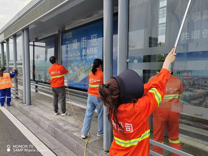 ? ? ? ?集中勞動“有力彰顯”。學(xué)習(xí)活動結(jié)束后,保潔、機(jī)關(guān)黨支部20多名黨員匯集新區(qū)核心區(qū)域徐圩大道,南京路等路段,開展黨員義務(wù)勞動?;顒蝇F(xiàn)場,大家分工明確,相互配合,無懼高溫天氣,上下?lián)]動雙臂,沖洗站臺玻璃和清理廣告標(biāo)語,經(jīng)過兩個多小時持續(xù)奮戰(zhàn),徒手清洗站臺20多個,座椅40多個。(楊波)
